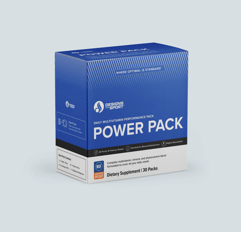 Upgrade your vitamin routine with Designs for Sport™ Power Pack - the cornerstone for any serious athlete’s supplement stack. Build a stronger foundation with convenient all-in-one packets developed to cover all the critical nutritional gaps that may affect any athlete’s performance. Each packet contains: 1 x Magnesium Bisglycinate, 1 X Vitamin D3 Pro Softgel, 2 x Omega-3 Hi-Po and 2 x Multi + Phyto.