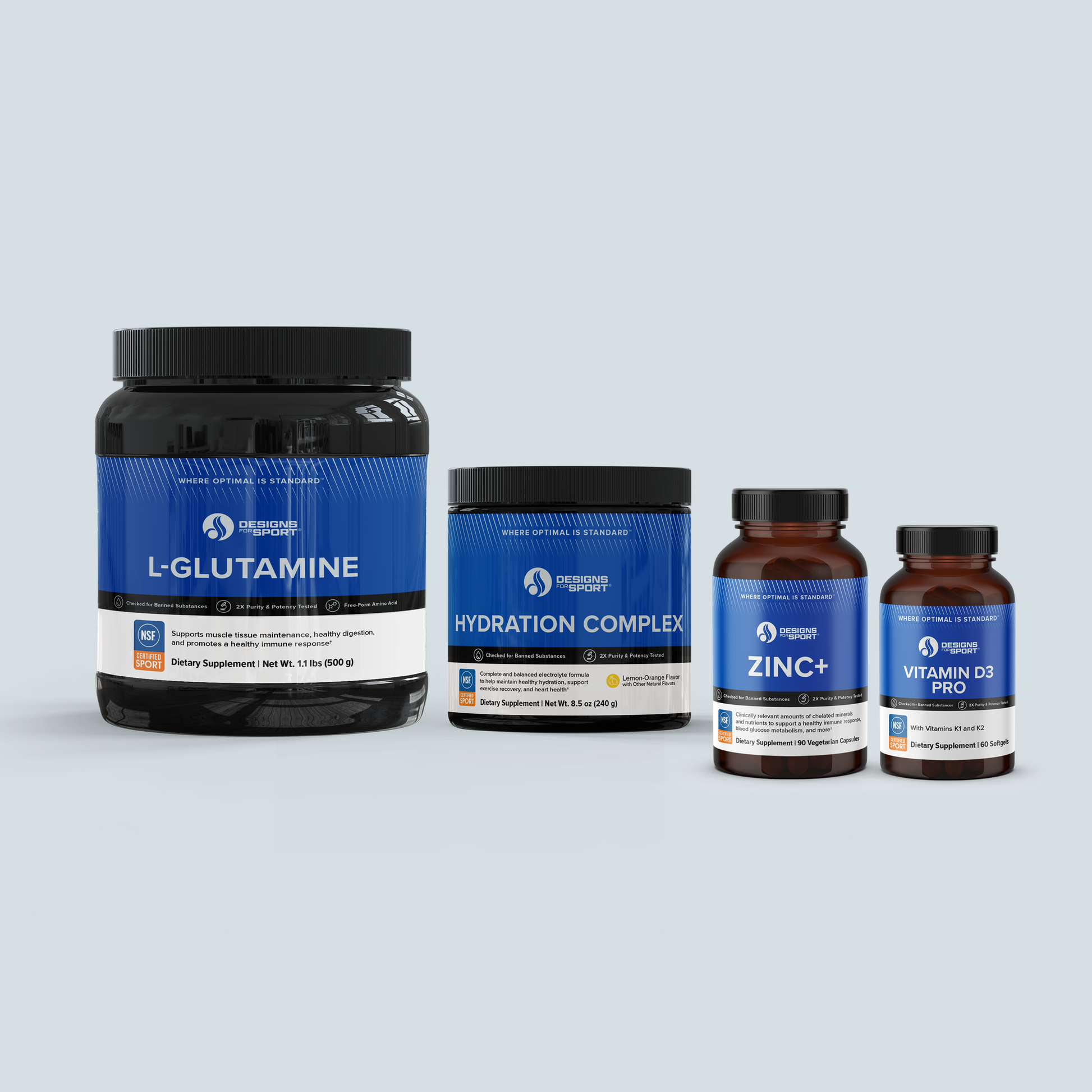 Support your immune system’s resilience and recovery with the Immune Sport Stack.* This all-in-one stack includes Hydration Complex for electrolyte balance and hydration, Vitamin D3 Pro to promote immune system and bone health, Zinc+ to help maintain optimal zinc status, and L-Glutamine to support both gut and immune system function.* These essentials help athletes stay strong, recover faster, and maintain peak health during rigorous training.*