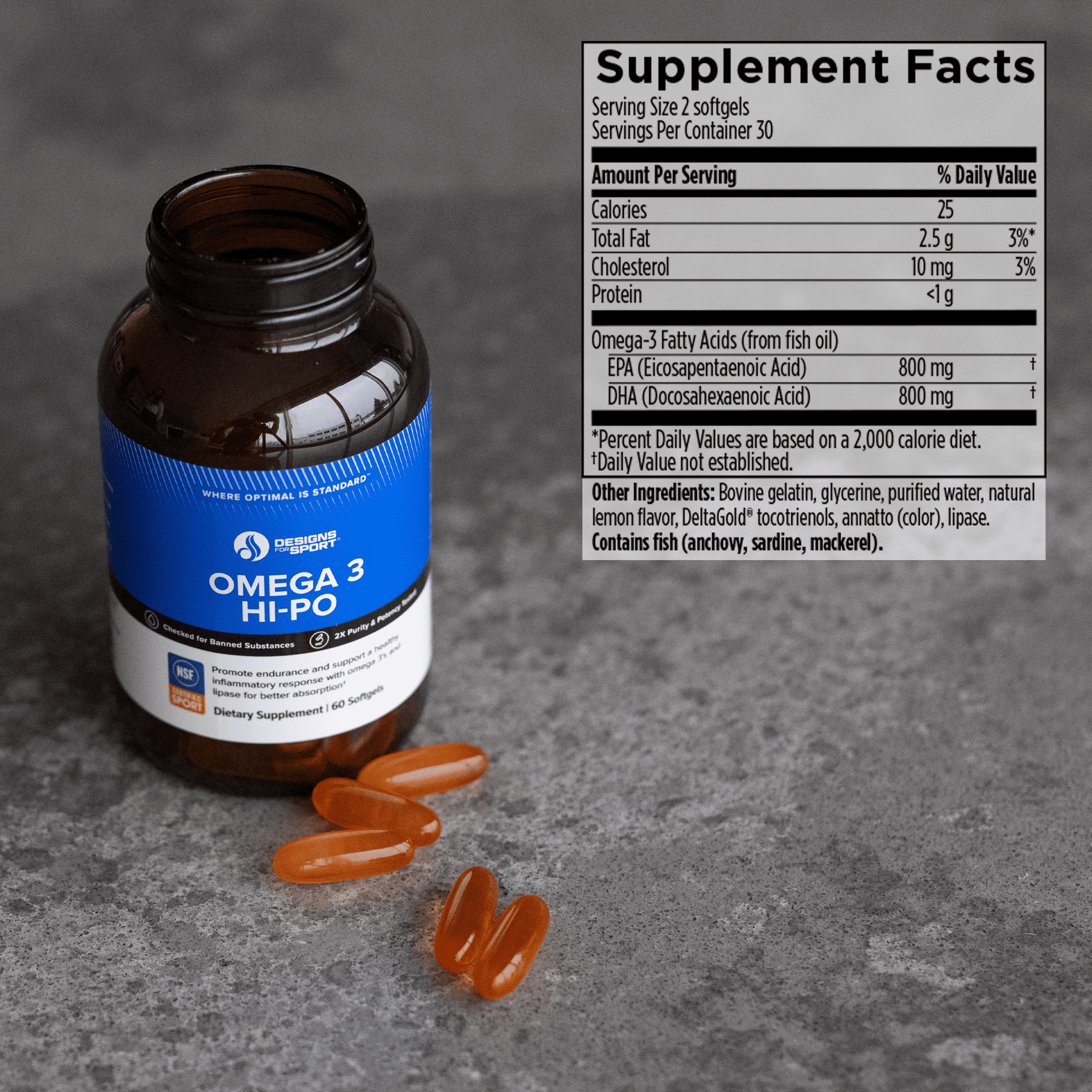 Omega 3 HI-PO provides a potent 1500 mg of omega-3 fatty acids (750 mg each of EPA and DHA per 2-softgel serving) in order to support an optimal body balance of these beneficial fatty acids.